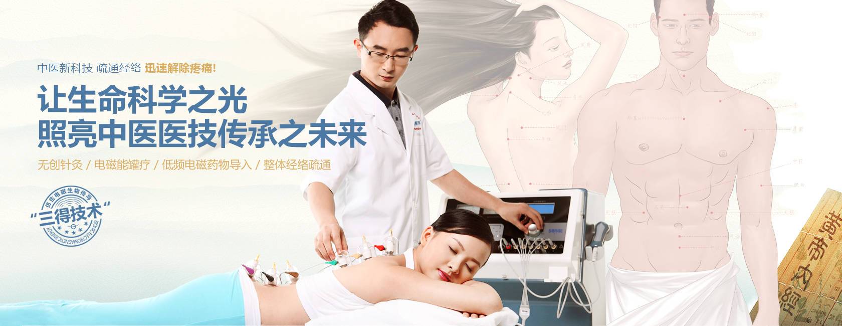 三得技術是一項基于低頻電磁能的全科高效臨床應用新技術,其四大首創技術分別是:“無創針灸”、“電磁能診療罐”、“彈道式電磁止痛沖擊槍”、“電磁能藥物導入”。